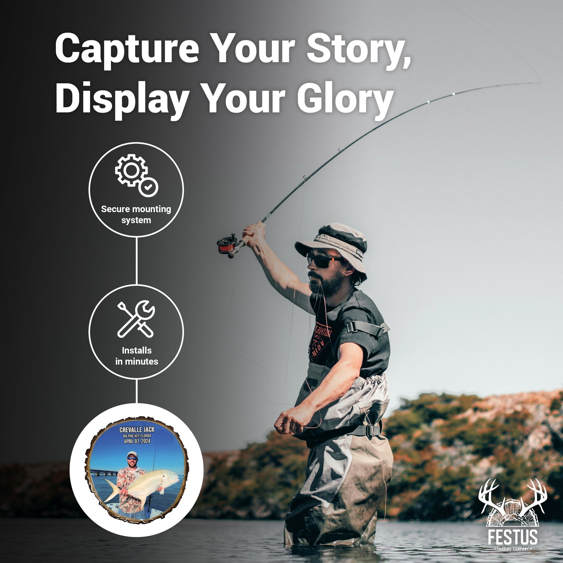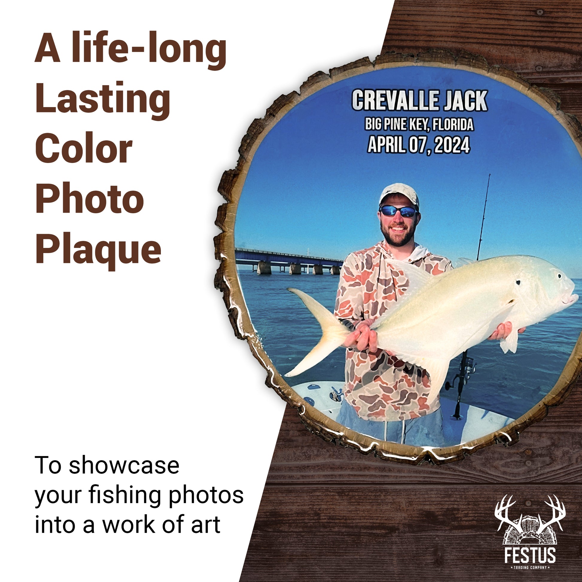 Celebrate your proudest fishing memory with this handmade custom photo plaque from Festus Trading Company is the perfect way to turn a fishing photo into a timeless display piece. Whether it’s your first catch or a trophy bass, Crafted with care and precision in the USA, this plaque captures the moment with striking clarity and rustic charm.
