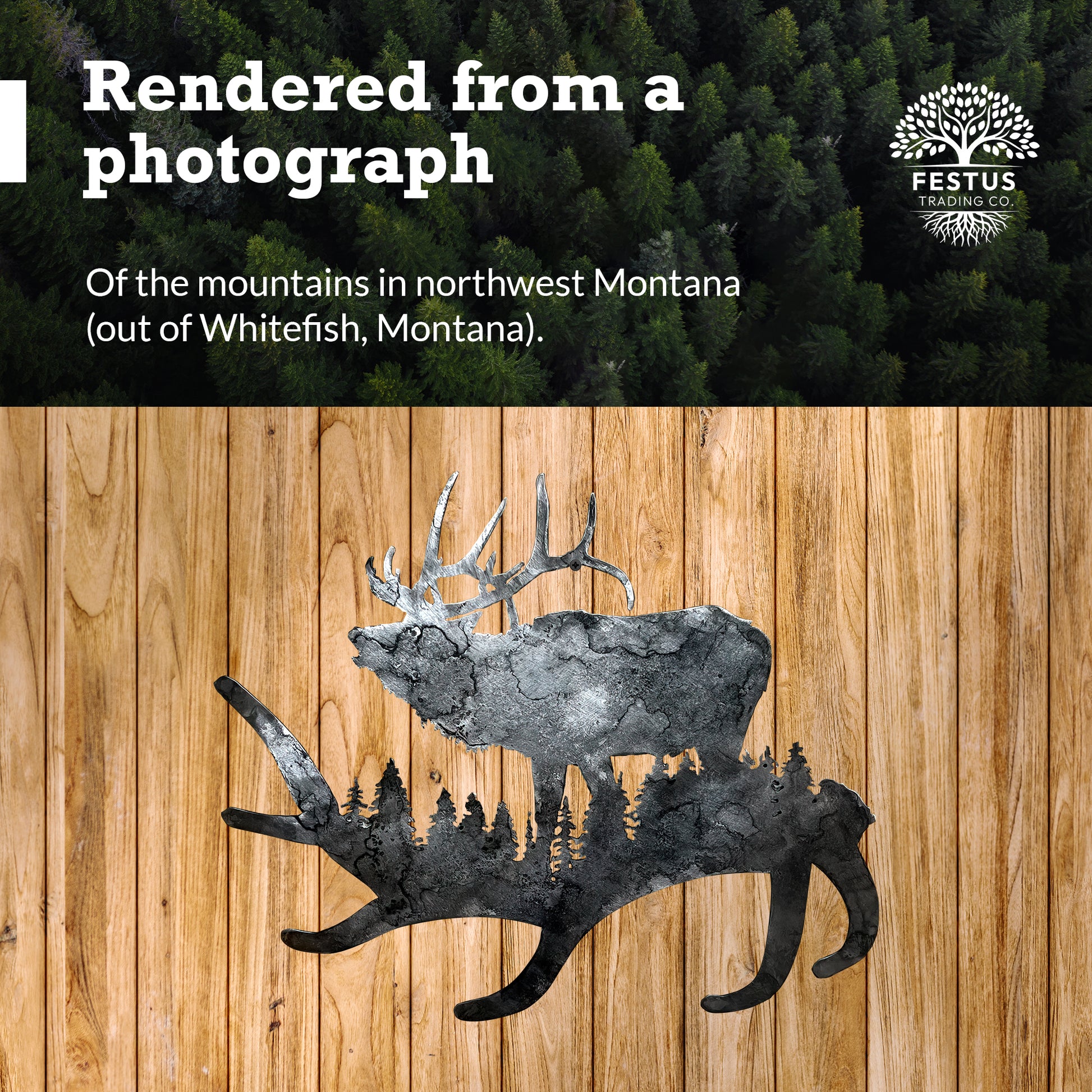 Bring the beauty of the wild into your home with the Elk Antler - Pantina wall art by Festus Trading Company. This eye-catching decorative piece showcases a realistic elk antler design with a patina finish, offering a blend of rustic charm and modern elegance.