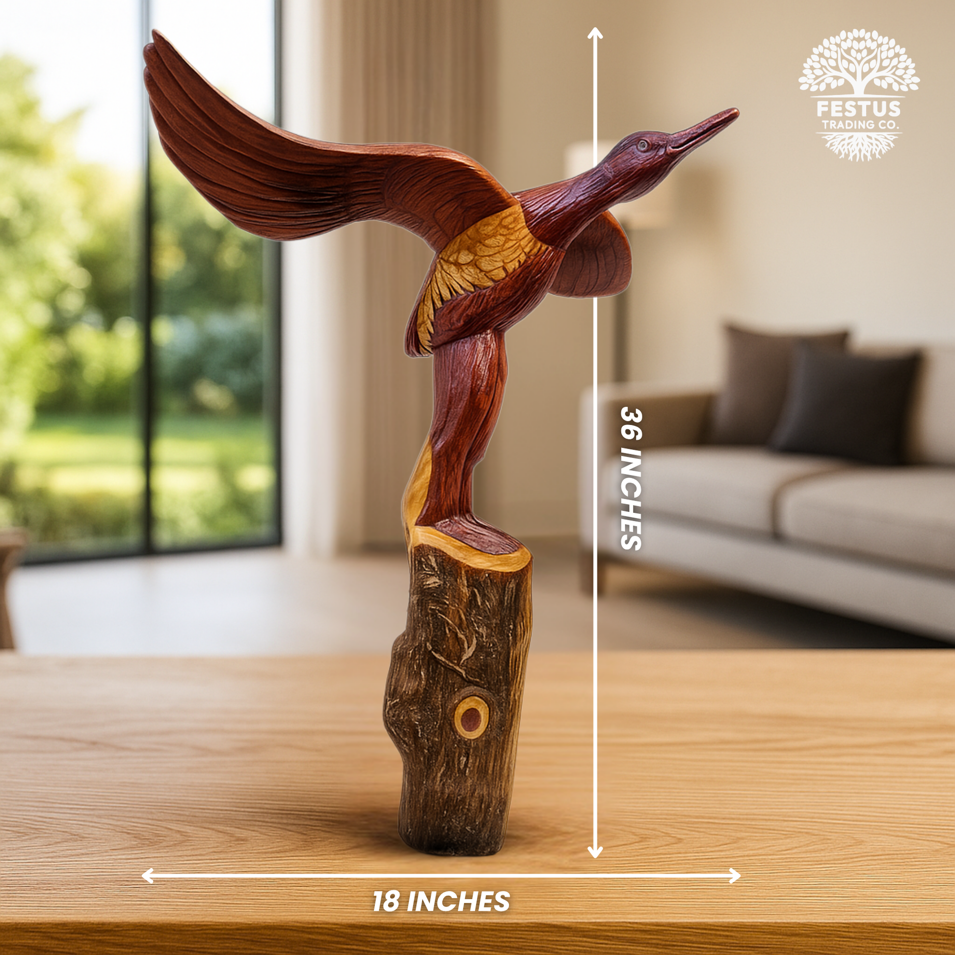 - Expertly Hand-Carved from Cedar Wood – This stunning landing duck sculpture is meticulously carved from solid cedar, capturing the natural beauty of a duck in flight.
