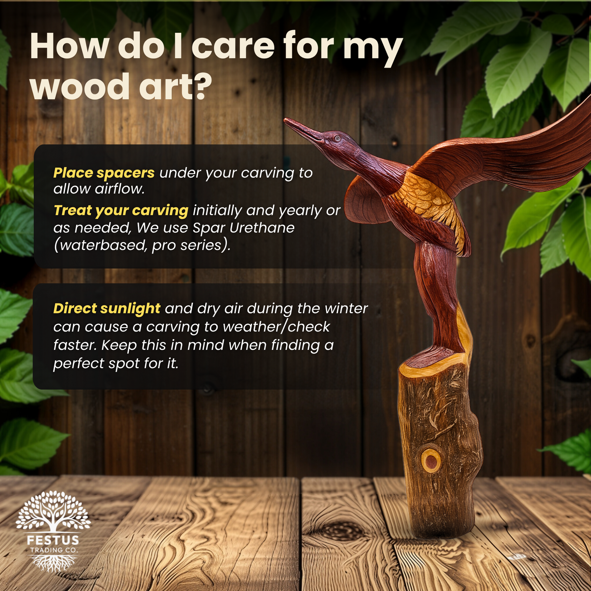 - Weather-Resistant Finish – Sealed with multiple layers of protective polyurethane to ensure your carving withstands the elements and stays beautiful for years.