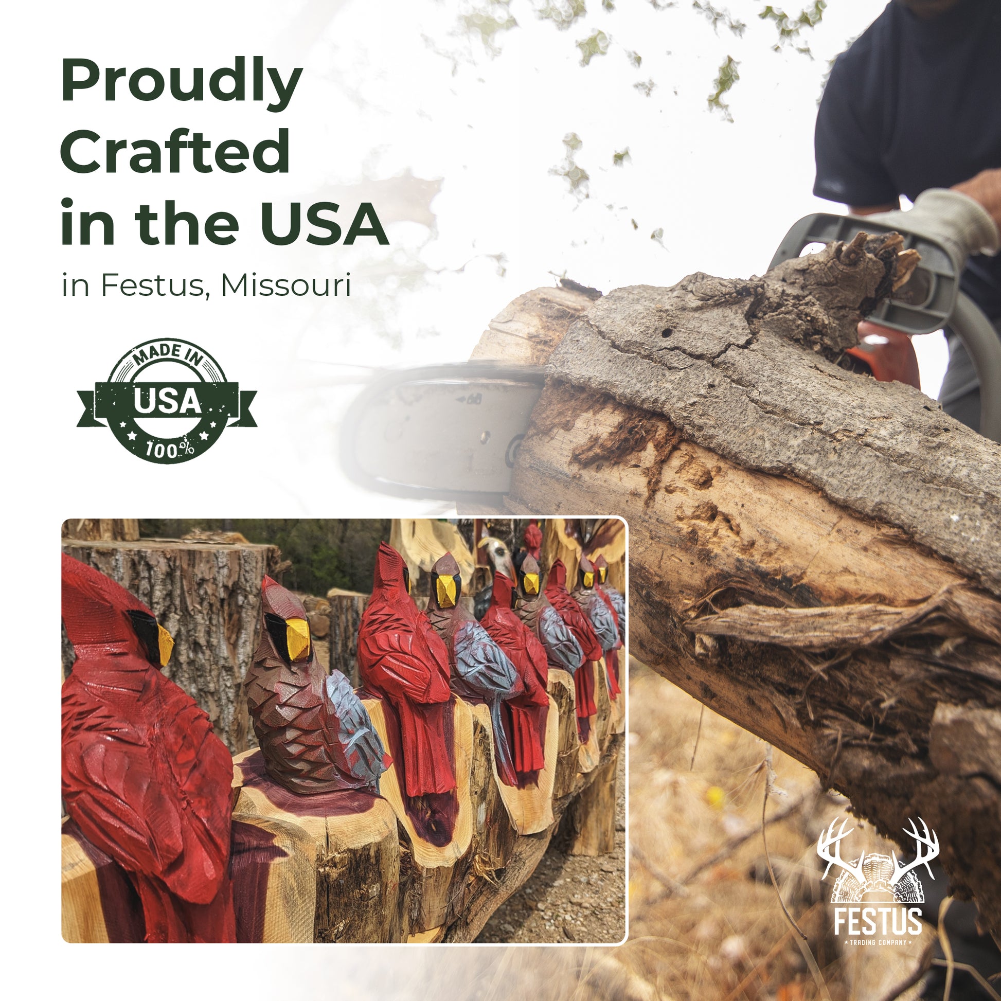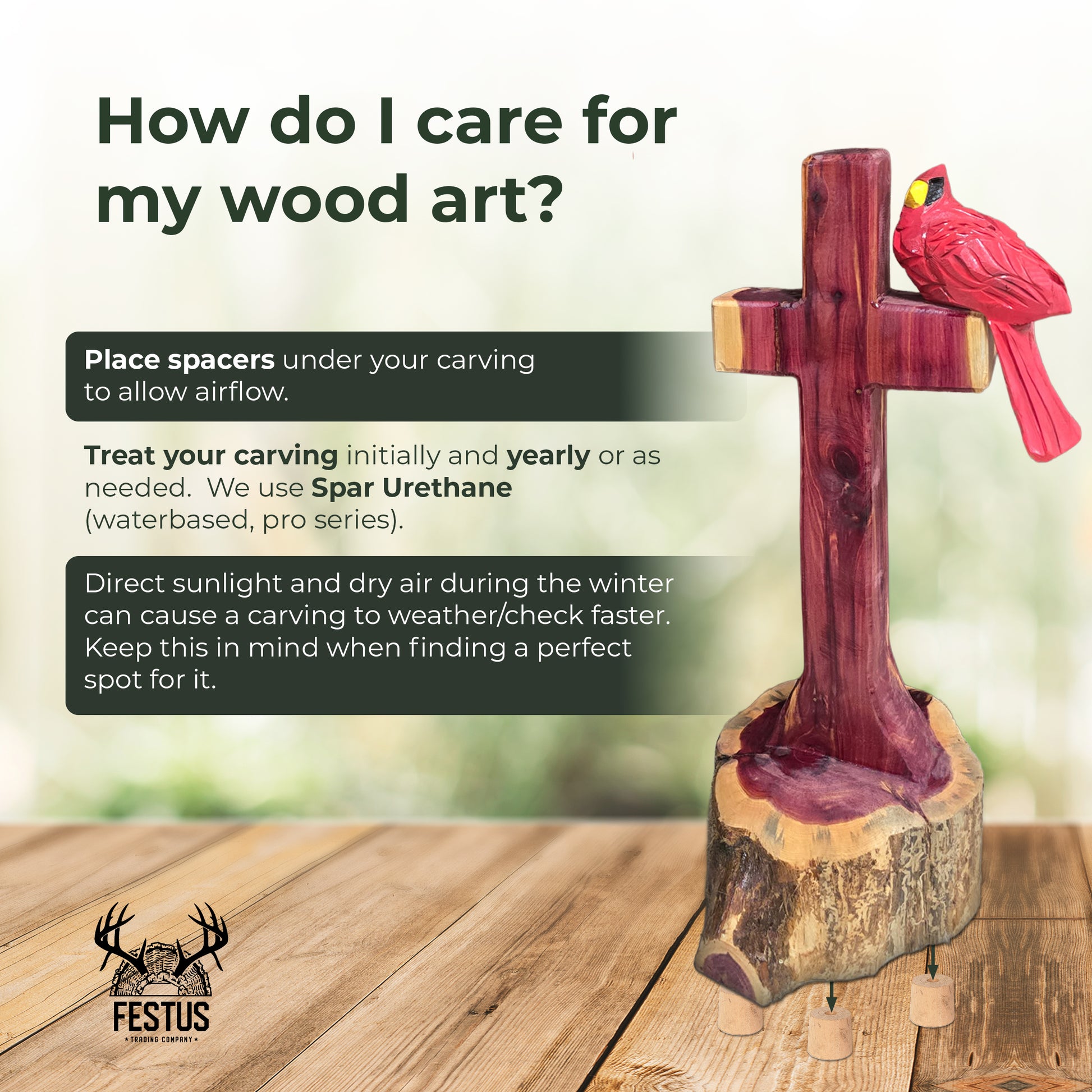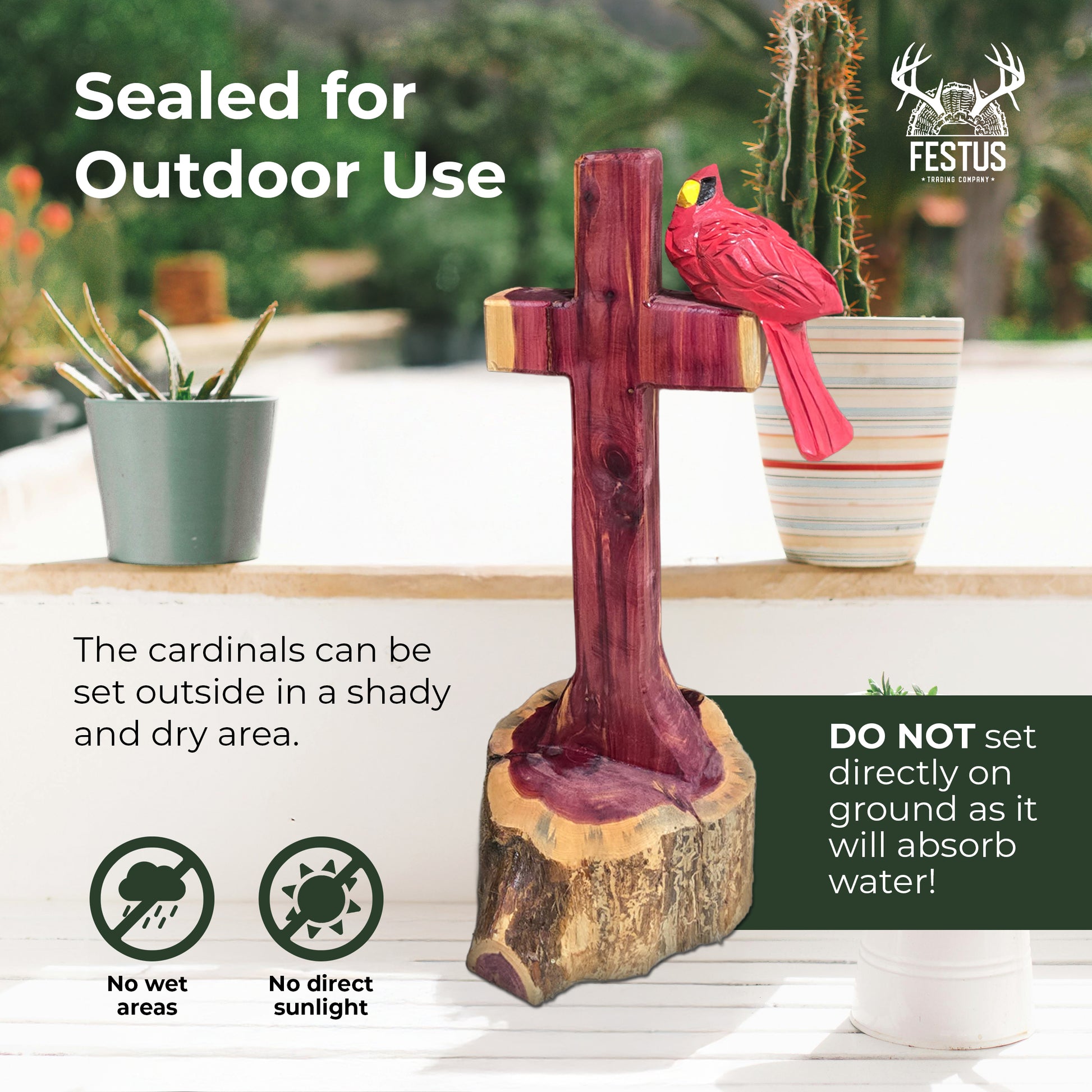 Celebrate the beauty of love, memory, and nature with this Two Cedar Cardinals on a Cross Chainsaw Carving. Handcrafted with care from solid cedar wood, this carving features two finely detailed cardinals perched on a rustic cross, symbolizing peace and eternal connection.