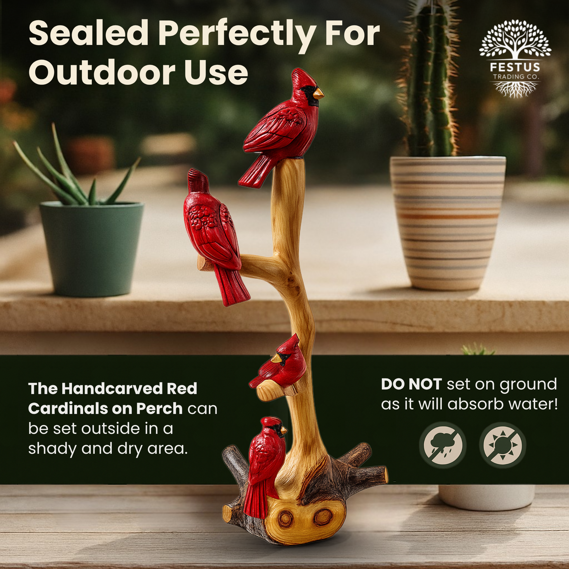 - Weather-Resistant Finish – Coated with multiple layers of protective polyurethane to safeguard against sun, rain, and weathering, ensuring the sculpture’s beauty for years.