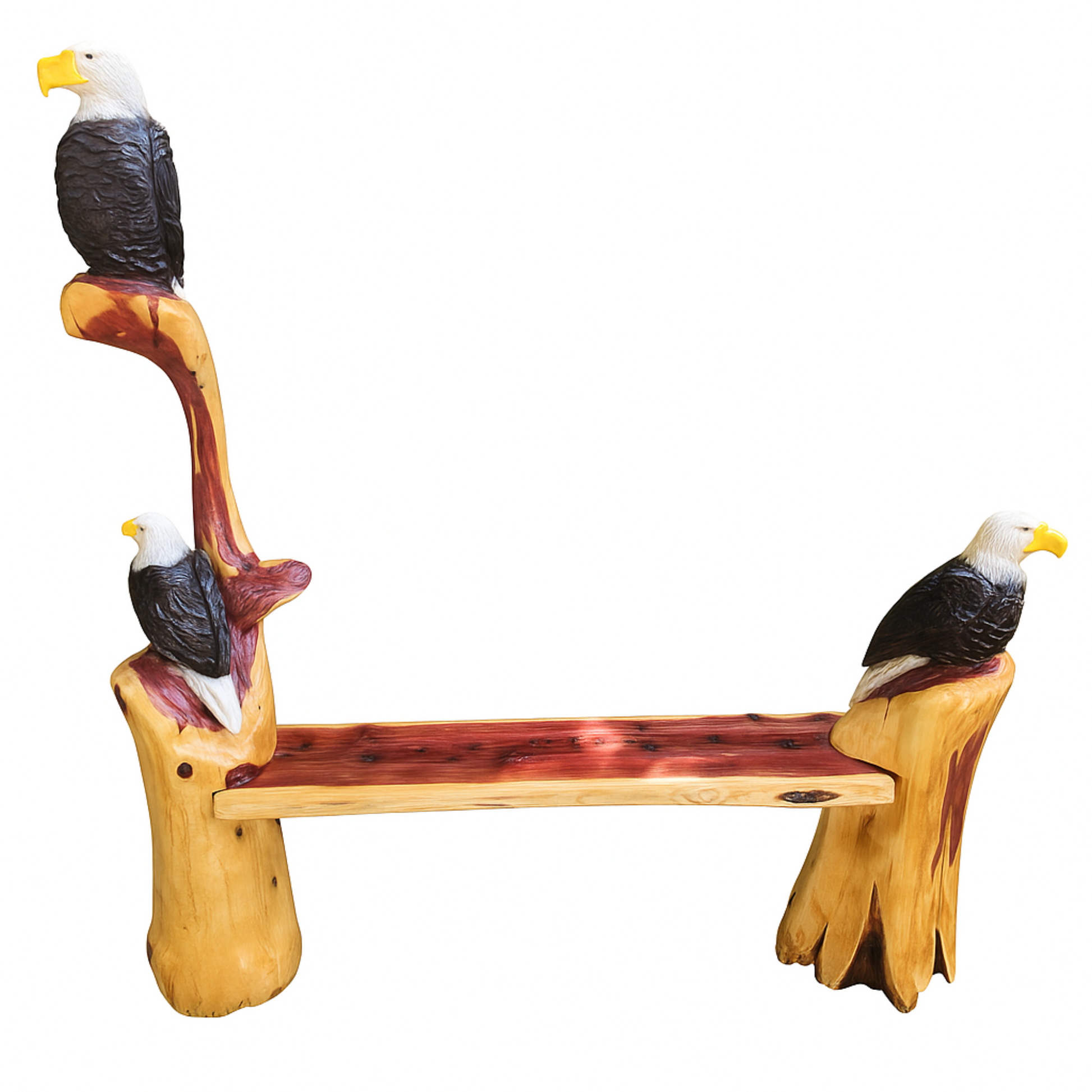 Triple Bald Eagle 6-Foot Cedar Bench – Handcrafted Wildlife Chainsaw Carving