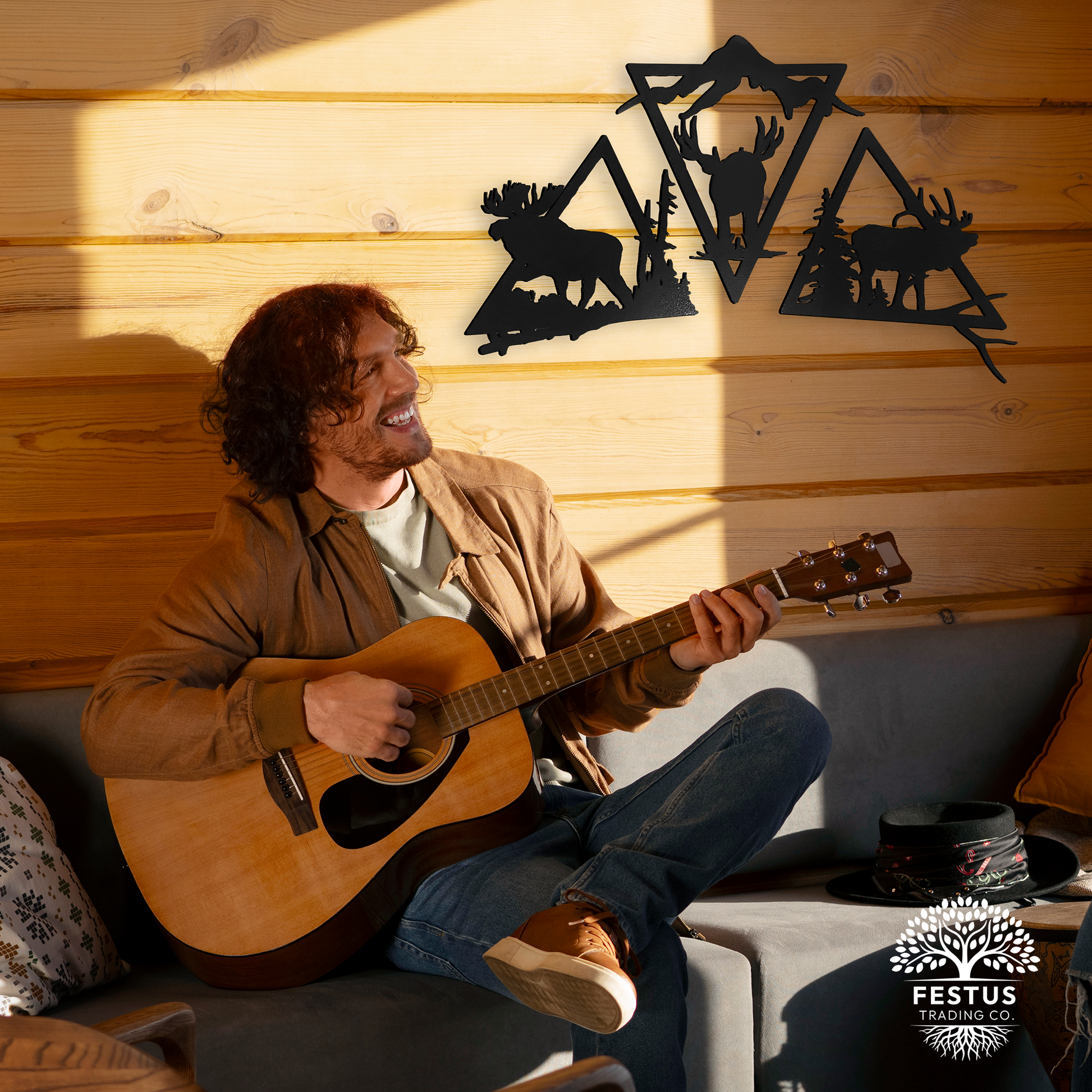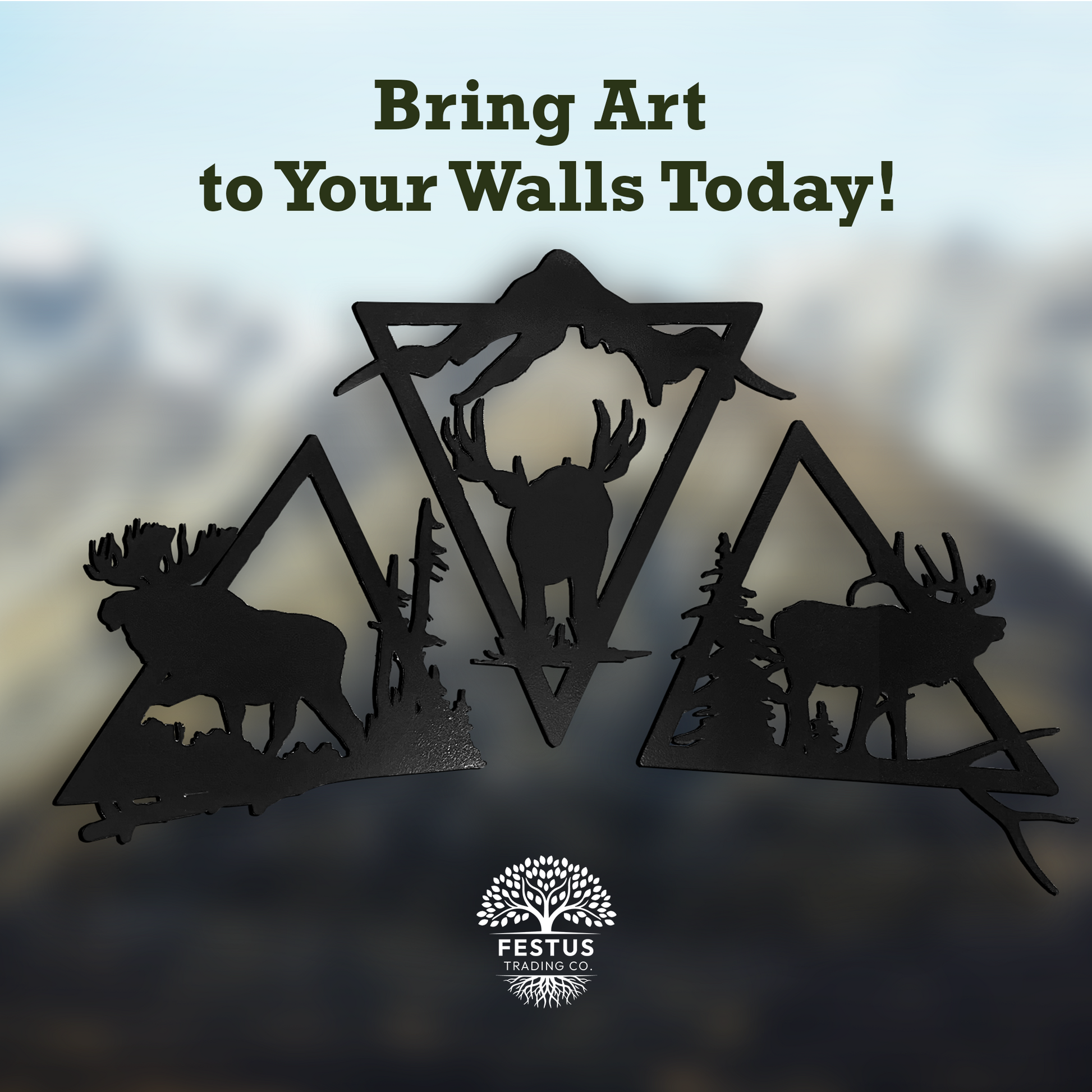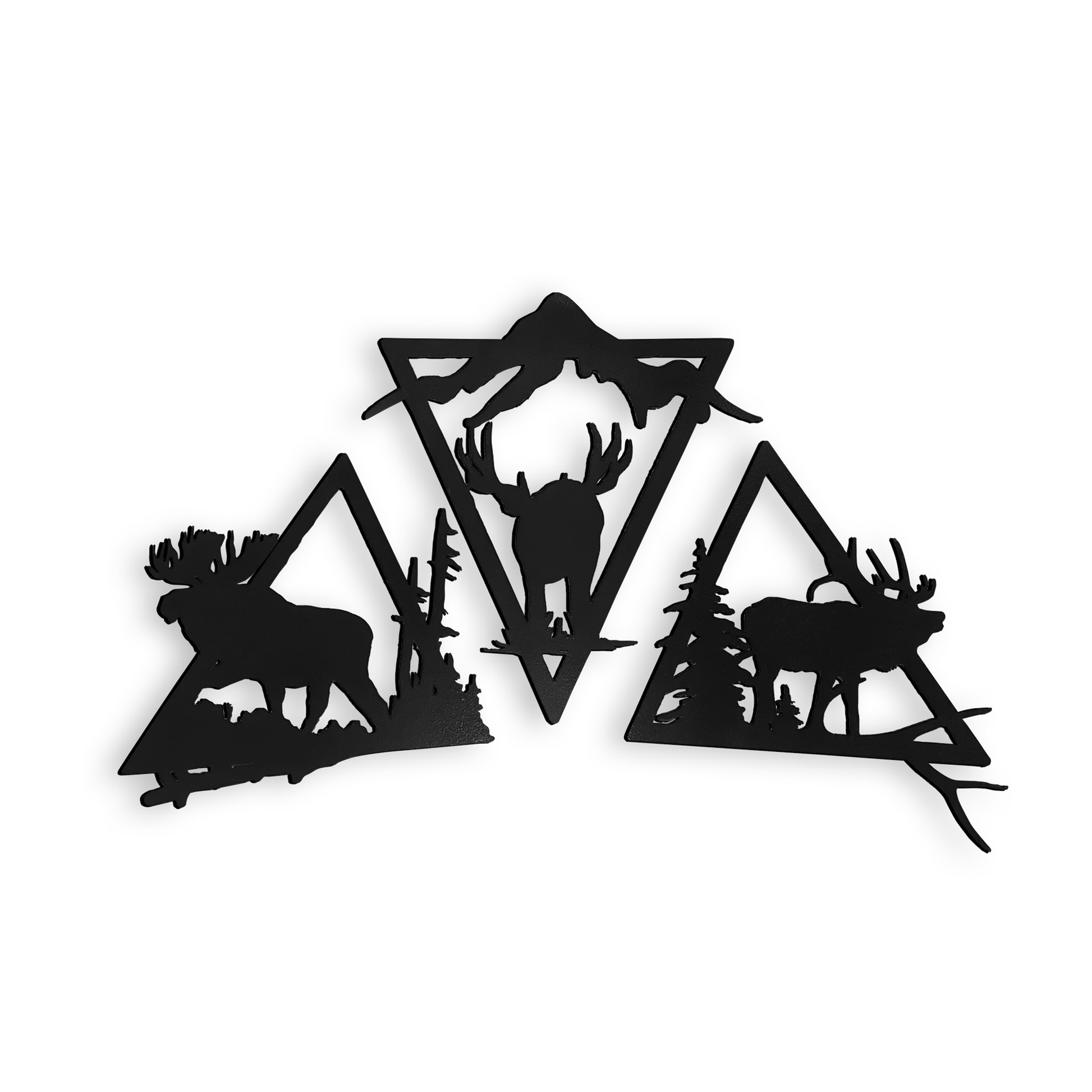 Celebrate the beauty of the wild with the Wildlife Triangle Trio metal wall art by Festus Trading Company. This decorative piece features three intricately designed wildlife scenes arranged in a triangular layout, showcasing the essence of nature in a stunning and rustic style.